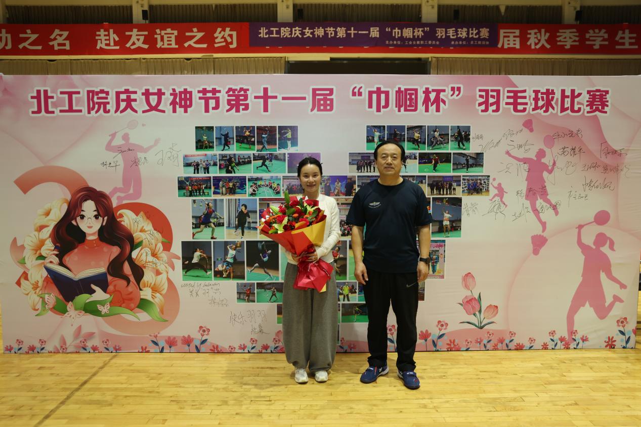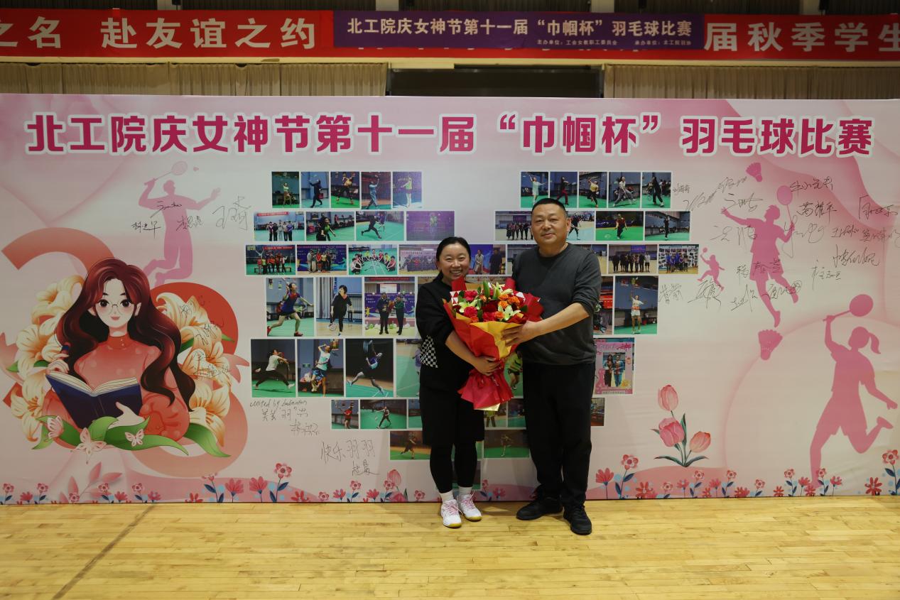 为表彰长期坚持体育锻炼、积极踊跃参与校羽毛球协会各项活动的女教职工,本次比赛特别设置“出勤满满奖”,杨洪玉、郭艳芬、郑立、杨可、张春芝五位老师凭借超高的活动出勤率和显著的运动进步获此殊荣,校教职工羽毛球协会主席为获奖教师现场颁奖。